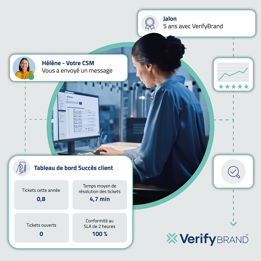 VerifyBrand est puissant, intuitif et soutenu par une équipe d’assistance qui tient ses promesses à chaque fois. Cessez d’attendre vos tickets de support ; choisissez une plateforme sur laquelle vous pouvez compter.